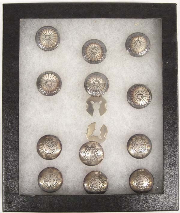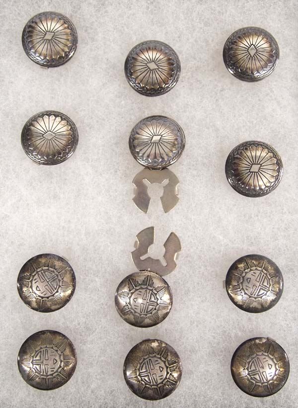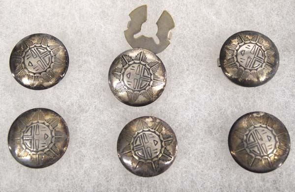Collection of 12 Sterling Silver Button Covers, measure .75''D, includes Whirling Feather and Sun Face God designs