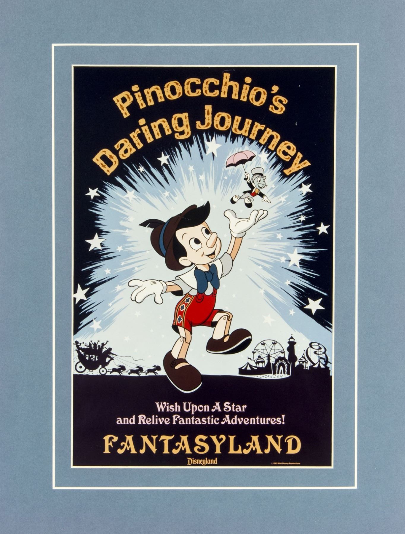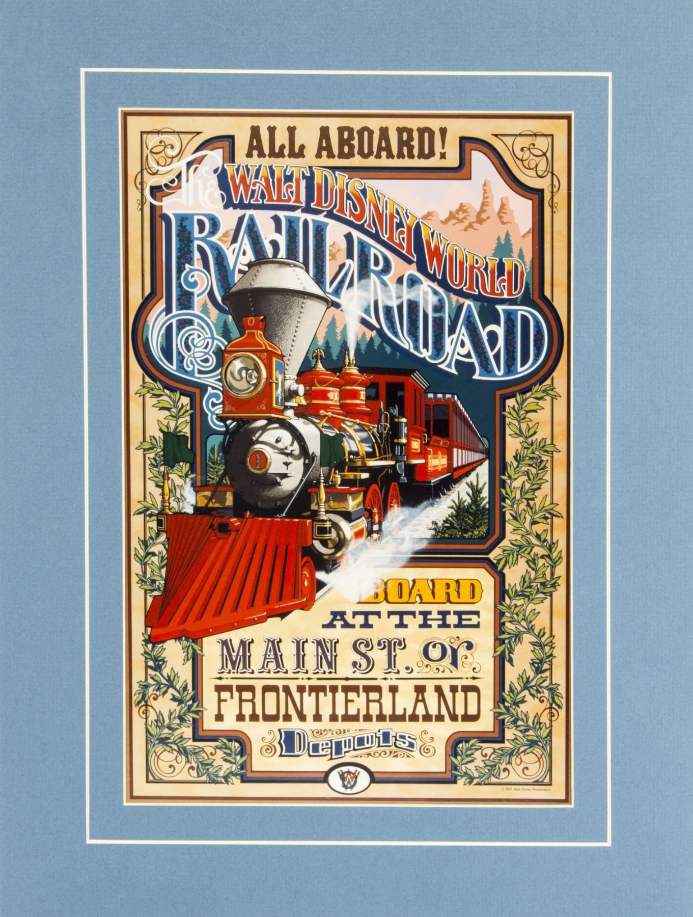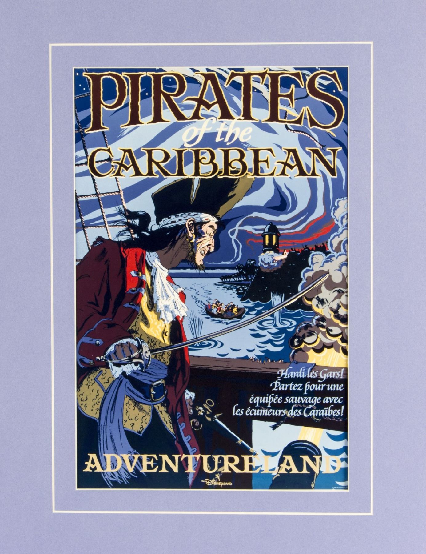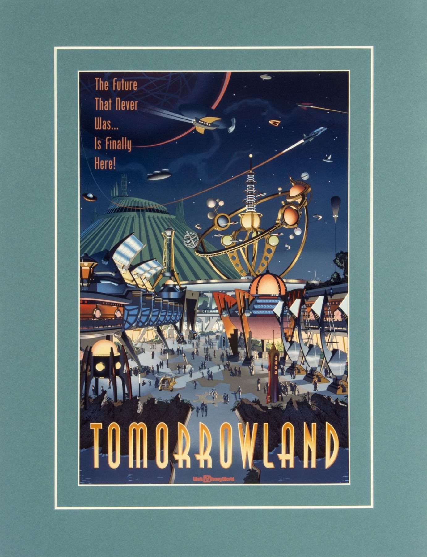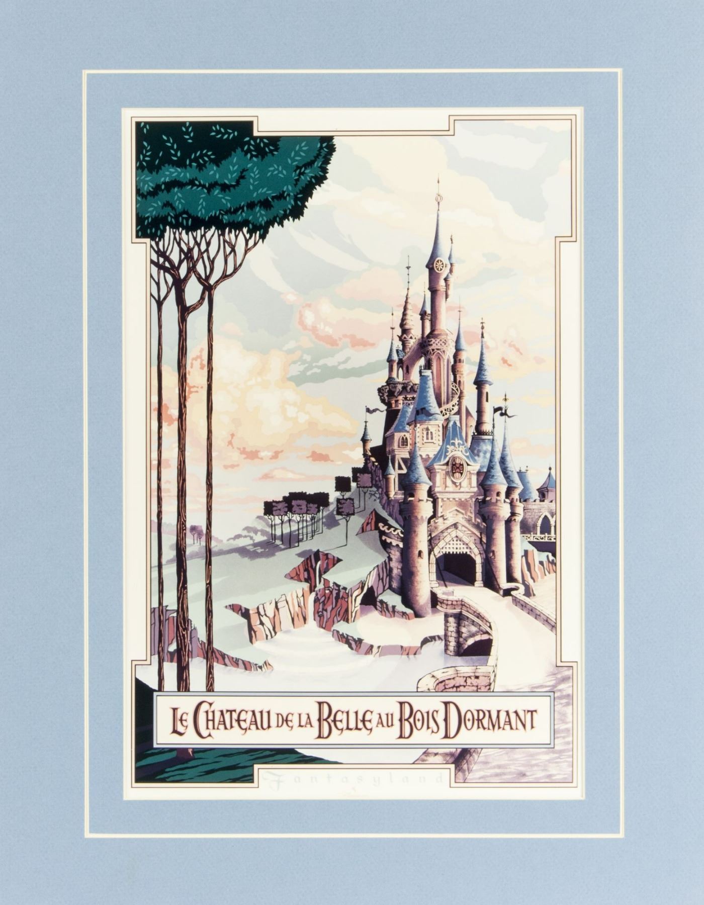 (Disneyland, c.2000s) A collection of 13 attraction poster prints from the Disney Gallery. This collection of poster artwork includes some of the most beautiful posters from Disneyland, Walt Disney World, and Euro Disneyland. Each print comes matted as sold in the Disney Gallery, and bears a Disney copyright stamp on its foam core backing. Each print measures 18"x14" matted, and the set is in overall fine condition with minor spots of wear throughout.