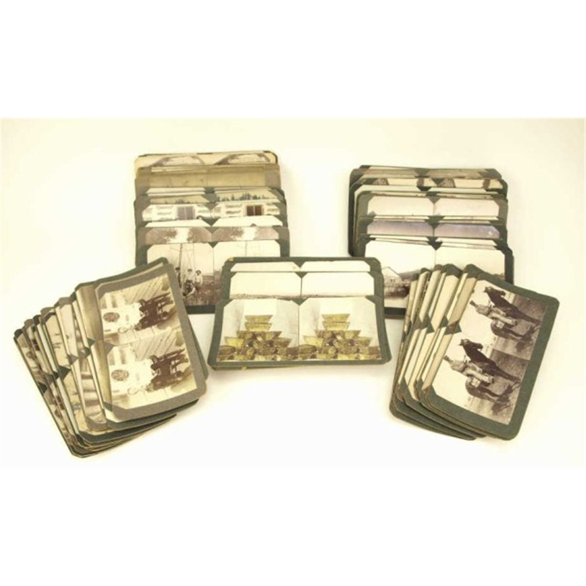 Collection of 135 photo stereoviews of various scenes including Montana gold mines, City of Butte Mt., Montana pioneer scenes, views from Bozeman and Butte Shortline railroad, Frontier town of Kindall Mt, 8 various view of Hot Springs SD., and fascinating lost view of Lost Well near Cascade Springs SD.