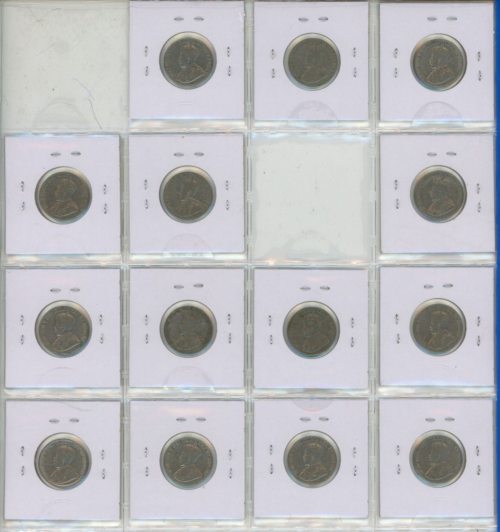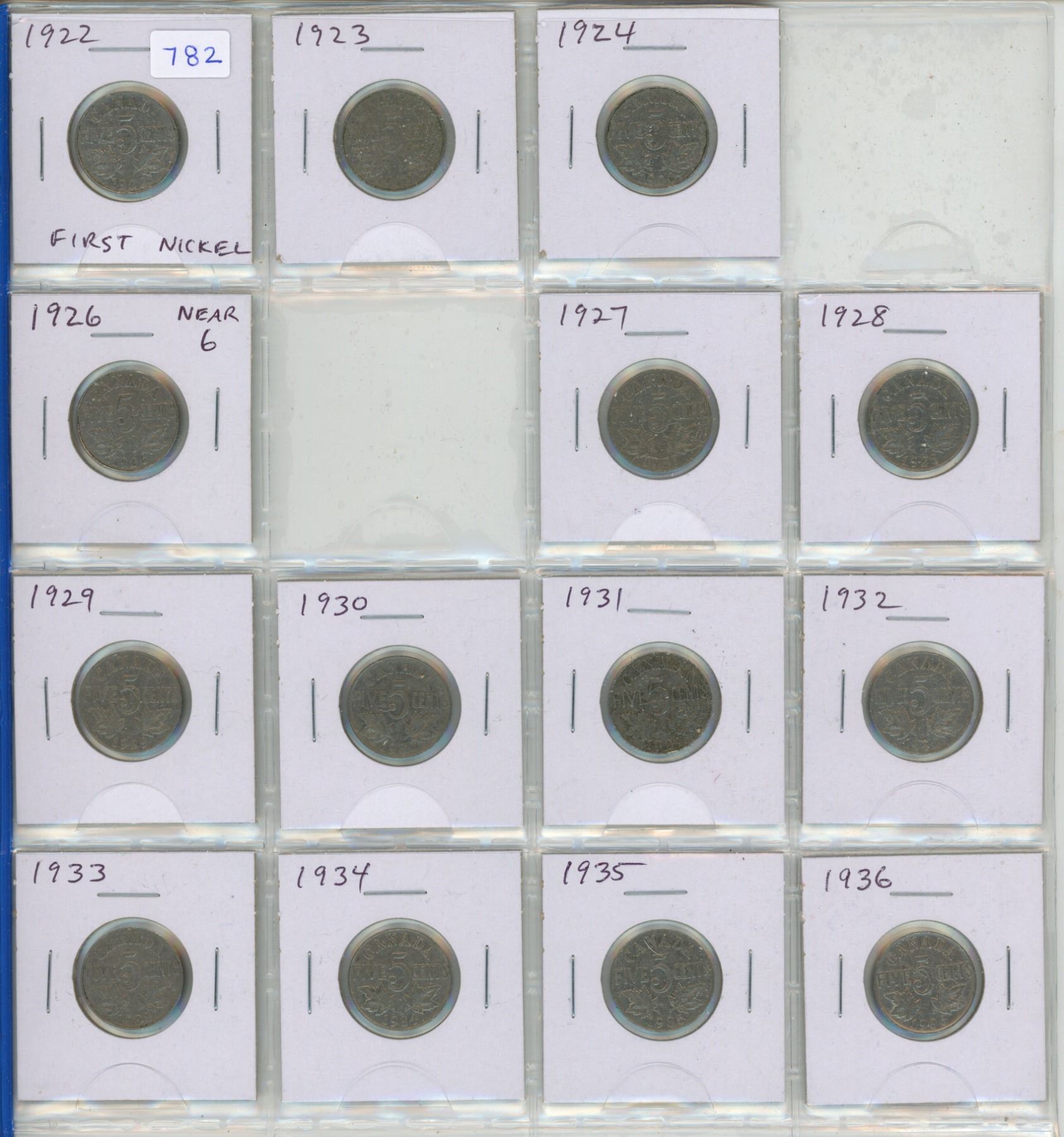 Collection of 14 Canadian King George V Nickel 5 Cents 1922 - 1936. Missing only the Key Dates 1925 & 1926 Far 6.
