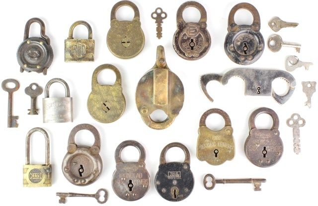 Milwaukee railroad brass body by Loeffelholz, misc. key included but don't fit any of the locks. Est. 75-150