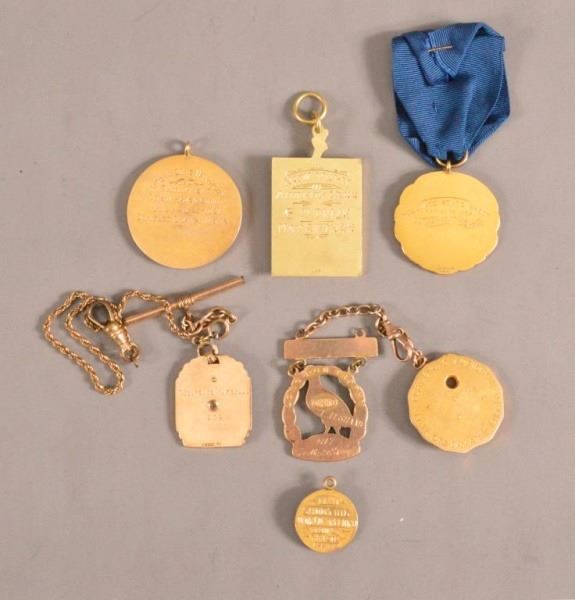 All Marked 14K Except The Bird Depiction Medal - Largest Measures 2" Long