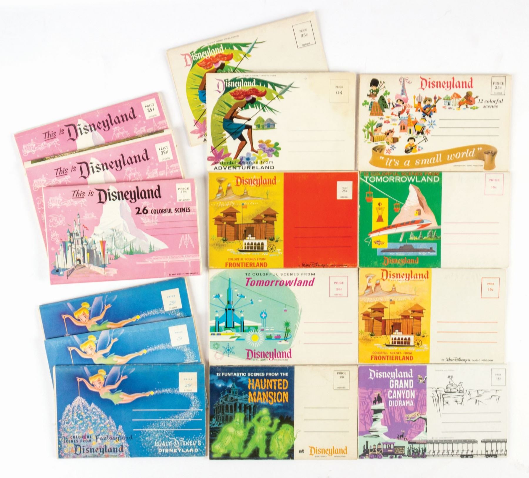(Disneyland, c.1960s-70s) A collection of (15) souvenir photo mailers featuring the various lands and attractions of Disneyland and Walt Disney World. The mailers contain several rare variants, with only one duplicate. Each mailer is unused and measures 4"x6.25". The set is in overall very good condition with some spots of wear throughout.