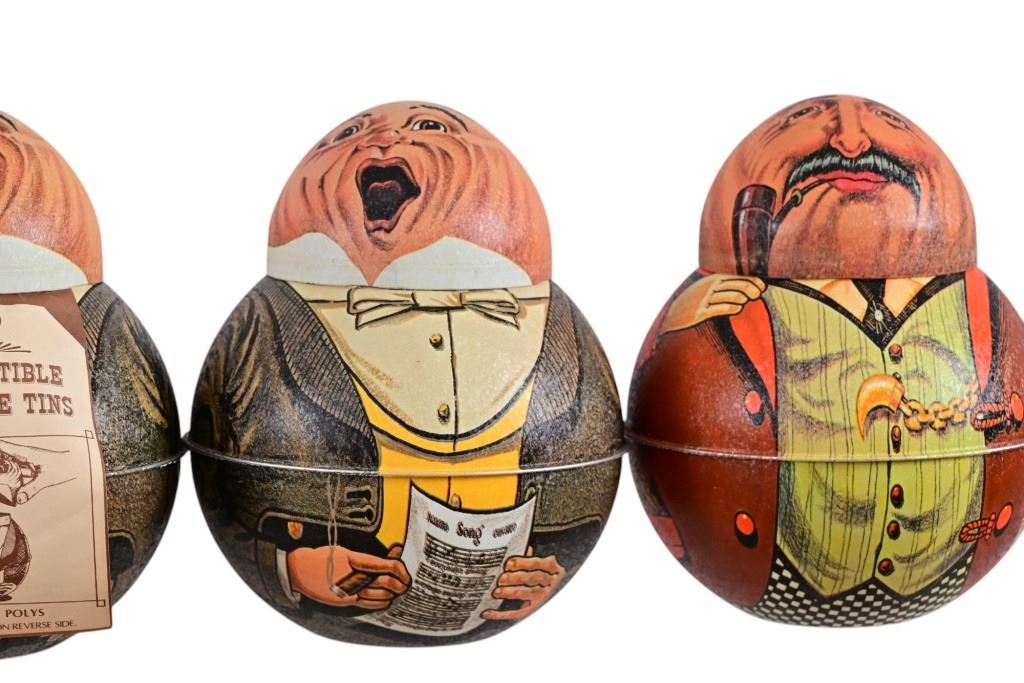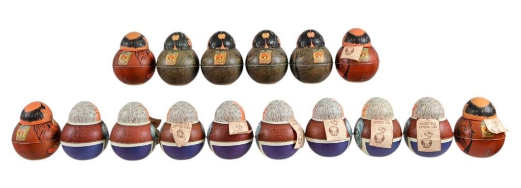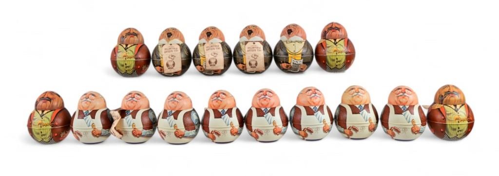 Collection of Sixteen (16) Little Man, Roly Poly, Tin Tobacco Containers. Reproduced from the 100 year old originals about 25 years ago. All in Mint Condition.