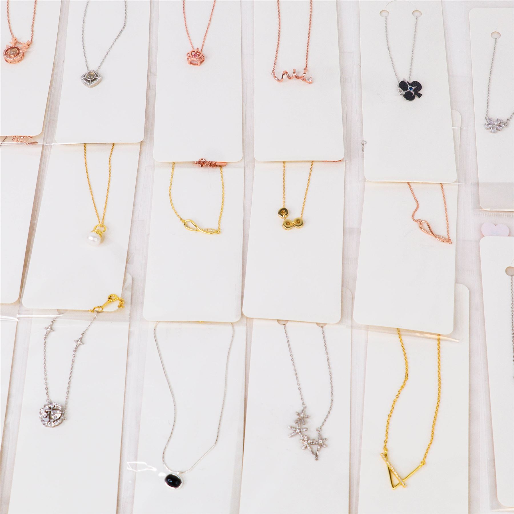 Sterling silver, some white rhodium plated, some yellow gold plated, with varying gemstones and pendant designs. Most have adjustable lengths.