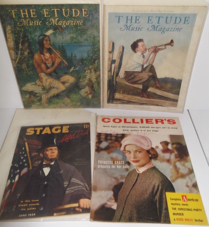 Collection of 16 magazines including 1906 The New York Metropolitan; 1940 The American House; 1940 The Etude; 1946 The Saturday Evening Post; 1930 The Etude; 1936 Life; 1937 The American Home. Stains; foxing; tears;