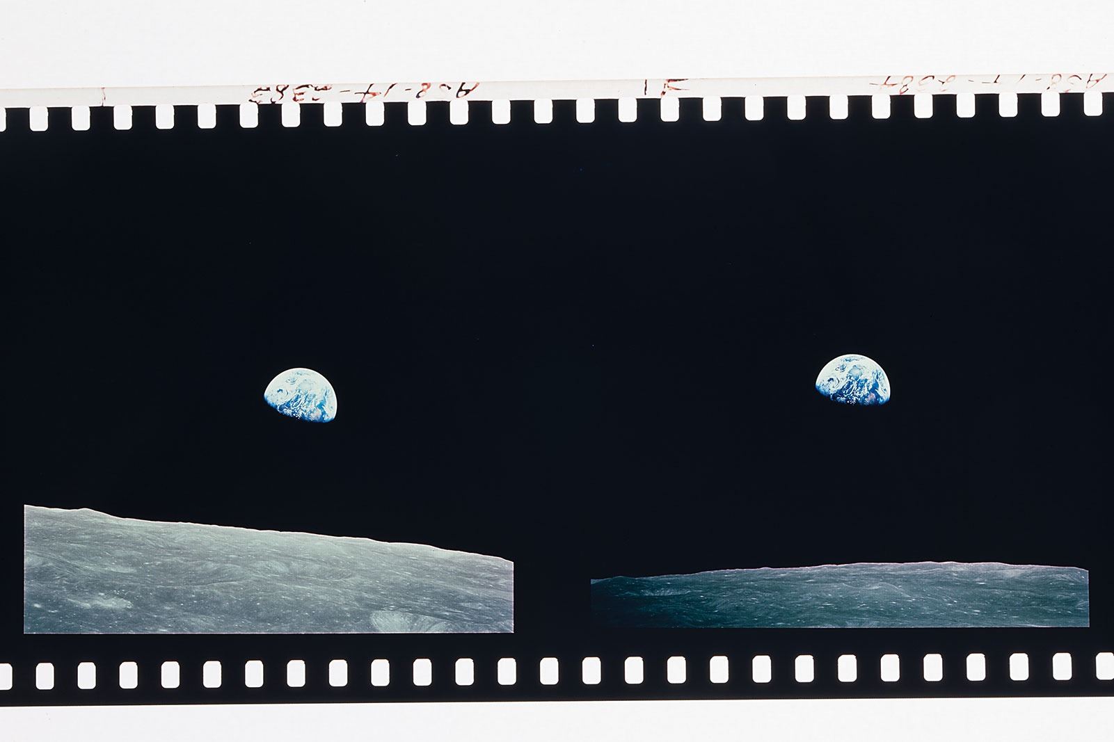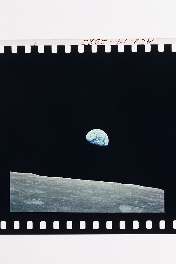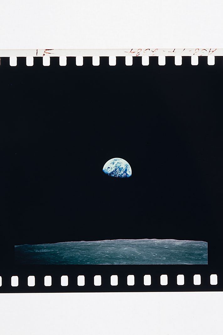 Collection of 17 rare rolls of color 70mm Kodak Ektachrome positive transparencies of images captured during the Apollo 8, 9, and 10 missions, including the iconic Apollo 8 'Earthrise' image, as well as images of the lunar surface, Lunar Module, Command Module, astronaut EVAs, and Earth. The rolls contain anywhere from four to several dozen images, amounting to hundreds in total. In fine condition. Provenance: The Rudolf Spoor Collection of NASA Photographs and Ephemera. Spoor was a Dutch television director who covered the American space program for over forty years.