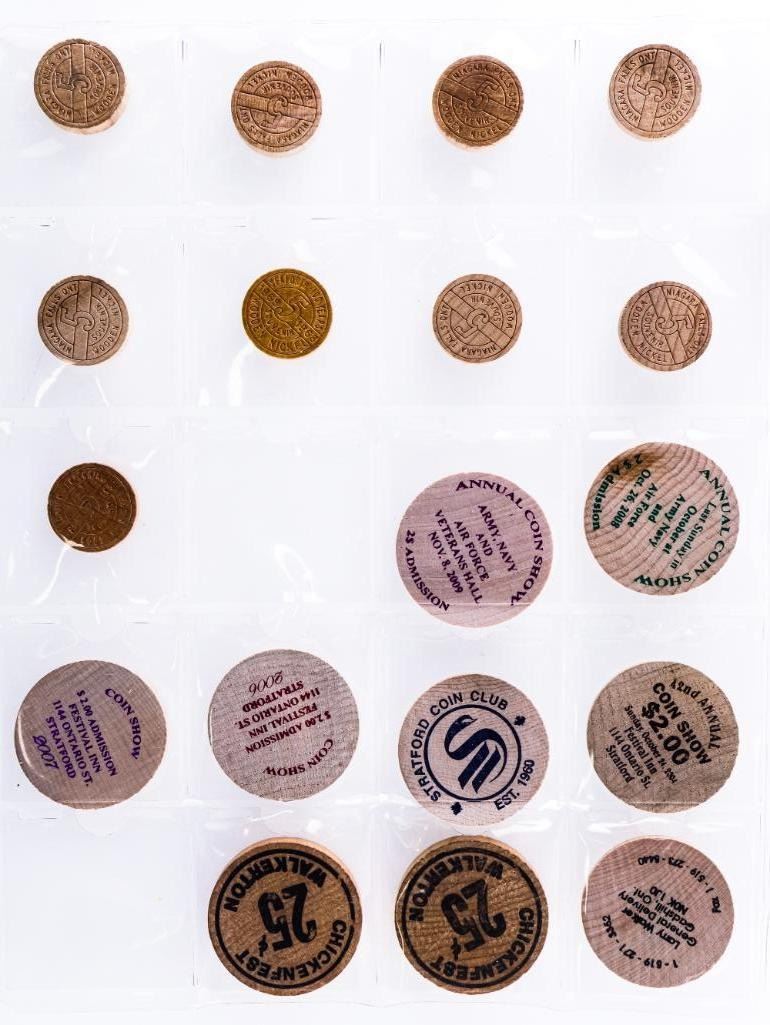 Collection of 18 Wooden Nickels & Medallions Coin Shows