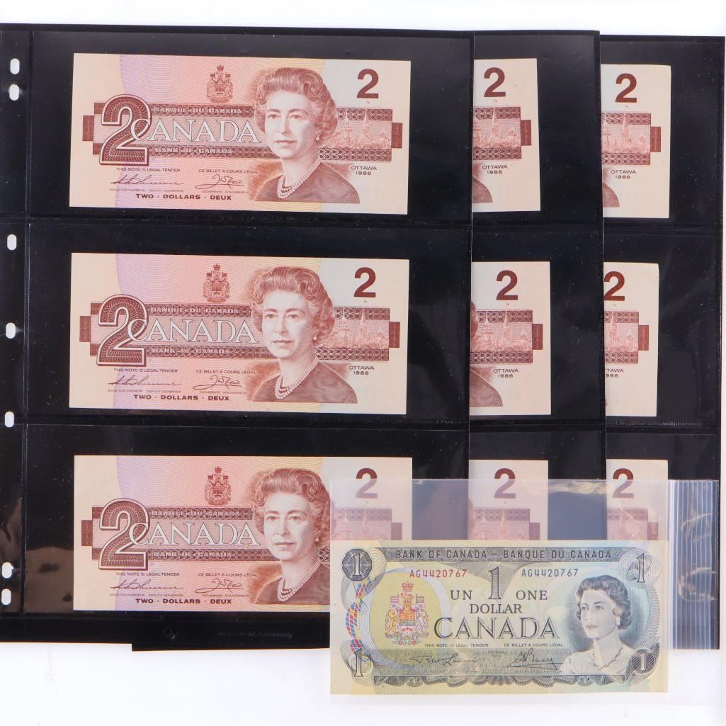Collection of 19 Canada & USA $1 &$2 Banknotes