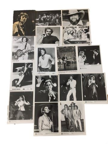 Collection of ~75 8"x10" publicity stills of musicians from the 1970's, many who have performed on the Monte Carlo show (1980-1975). This is a great collection for music lovers of this era. Some of the artists include The Beatles color poster with lyrics on the back, David Bowie, The Heaters, Charo, Harry Chapin, Steve Miller, Anthony Newly, Glen Campbell, The Charlie Daniels Band, Van Morrison, Roy Clark and many more.