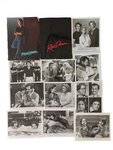 Collection of ~100 black and white publicity stills mainly 8"x10"s and 2 press kits from United Artists (circa 1970'-80's). Includes press kit and publicity stills from "Red Dawn" (1984) starring Patrick Swayze as Jed Eckert, Jennifer Grey as Toni and Charlie Sheen as Matt Eckert. When Soviet soldiers invade a small Colorado town, brothers Jed and Matt escape to the forest to live with friends. Also includes publicity stills and press kit from " Road House" (1989) starring Patrick Swayze as John Dalton, Sam Elliot as Wade Garrett, and Kelly Lynch as Elizabeth Clay. The Double Deuce is the meanest loudest bar south of the Mason-Dixon line and Dalton has been hired to clean it up. Also includes publicity stills from "Rich Kids" (1979), "Return of the Sabata" (1971), and "Report to the Commissioner" (1975), which includes such stars as Terry Kaiser, Jeremy Levy, Roberta Maxwell, Paul Dooley, John Lithgow, Jill Ekenberry, Kathryn Walker, Trini Alvarado, David Selby, Irene Worth, Patti Hanson, Reiner Schone, Gianpiero Albertini, Annabella Icontrera, Nick Jordon, and Vassilla Karis.
