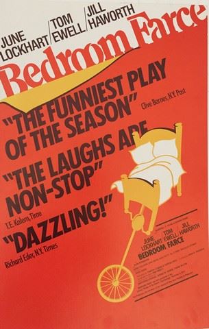 1975 ORIGINAL THEATRE WINDOW CARD FOR BEDROOM FARCE POSTER, JUNE LOCKHART & TOM EWELL