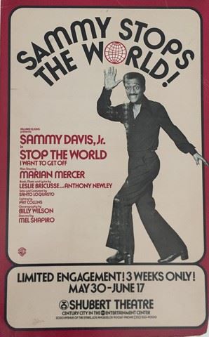 THE MARK TAPER FORUM IN LOS ANGELES. 1978 THEATRE WINDOW CARD POSTER STOP THE WORLD I WANT TO GET OFF, SAMMY DAVIS JR.