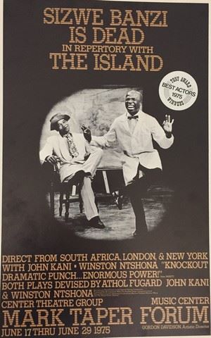 1975 ORIGINAL THEATRE WINDOW CARD FOR SIZWE BANZI IS DEAD.