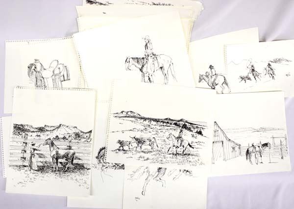 Collection of 1991 Sketchbook Drawings by P. Marquez, largest measures 10'' x 12'', includes 37 sketches, one of them has some staining at the top