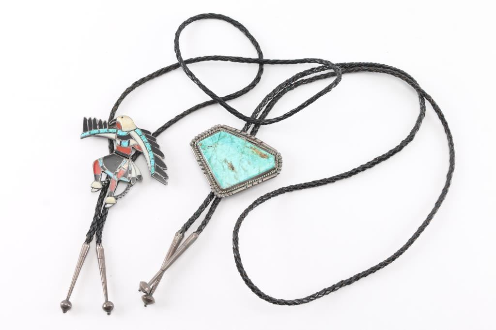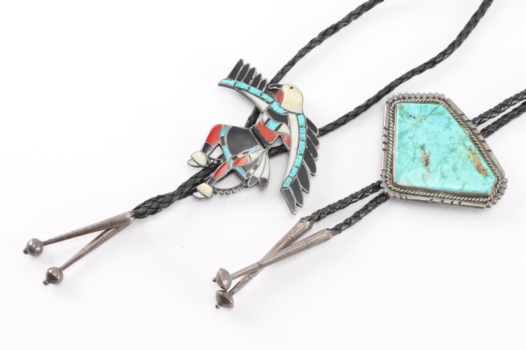(1) Inlaid Stone Zuni Eagle dancer Bolo Tie set in sterling silver unsigned