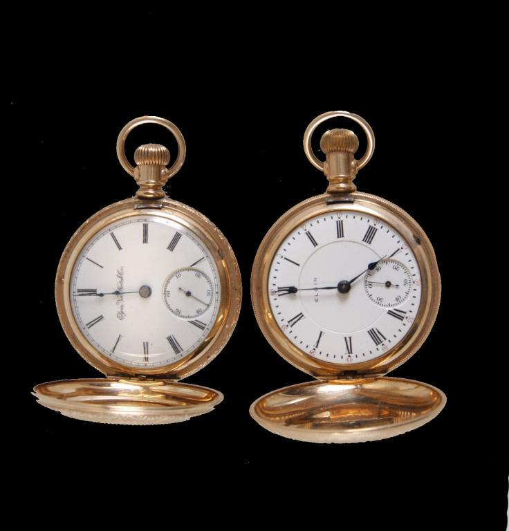 Collection of 2 Elgin Pocket Watches Hunter cased, rolled gold, both appear to be in non-working con