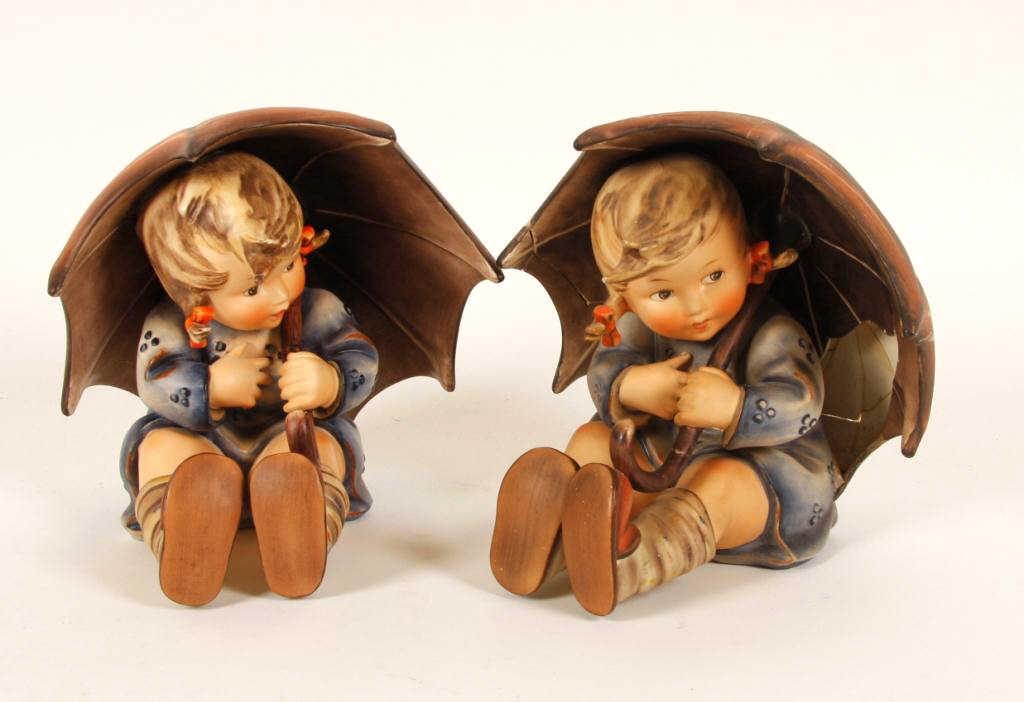 Collection of 2 Large Goebel Hummels One entitled "Umbrella Girl", one is in near new condition and the other has been damaged and glued back together.One entitled "Umbrella Girl", one is in near new condition and the other has been damaged and glued back together.