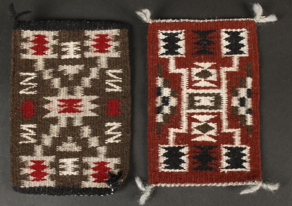 (1) Geometric design in brown black and white. 4-1/4" wide x 6" long. (1) Geometric design in brown, black, red, and white. 4" wide x 6" long. Both in good condition.