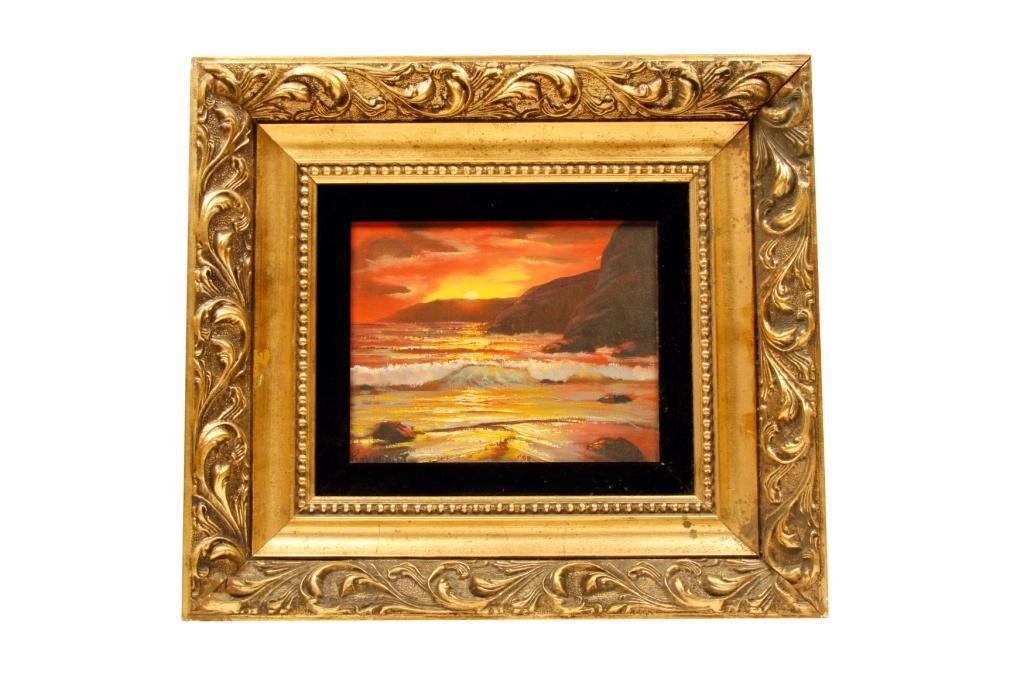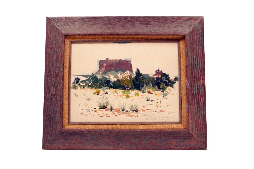 Collection of 2 Oil Paintings on Canvas including an Original by Violet K Parkhurst depicting a Sunset, image size is 9 1/2" X 9" and an original by P Suinnerton inscribed "Lone Mesa in Sedona Oak Creek Country Near Flagstaff, Arizona." image size is 15" X 11".