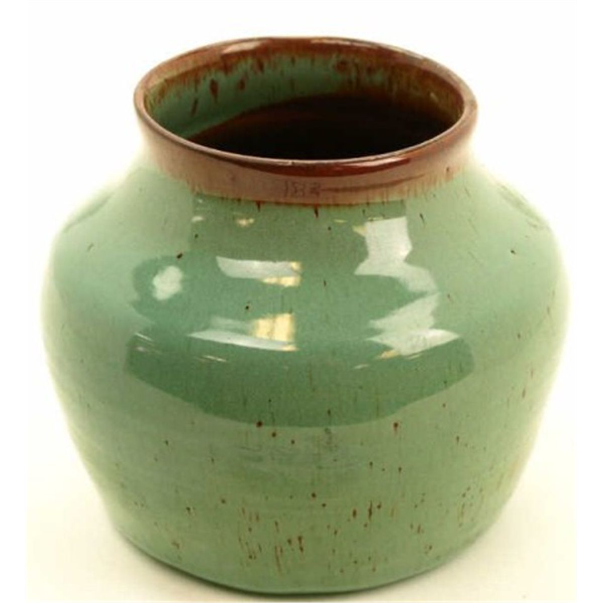 Collection of 2 Pine Ridge Pottery includes Pine Ridge Pottery small pot by Cottier 7" tall and Pine Ridge Pottery vase by E. Irving 4" tall. No chips, cracks or repairs.