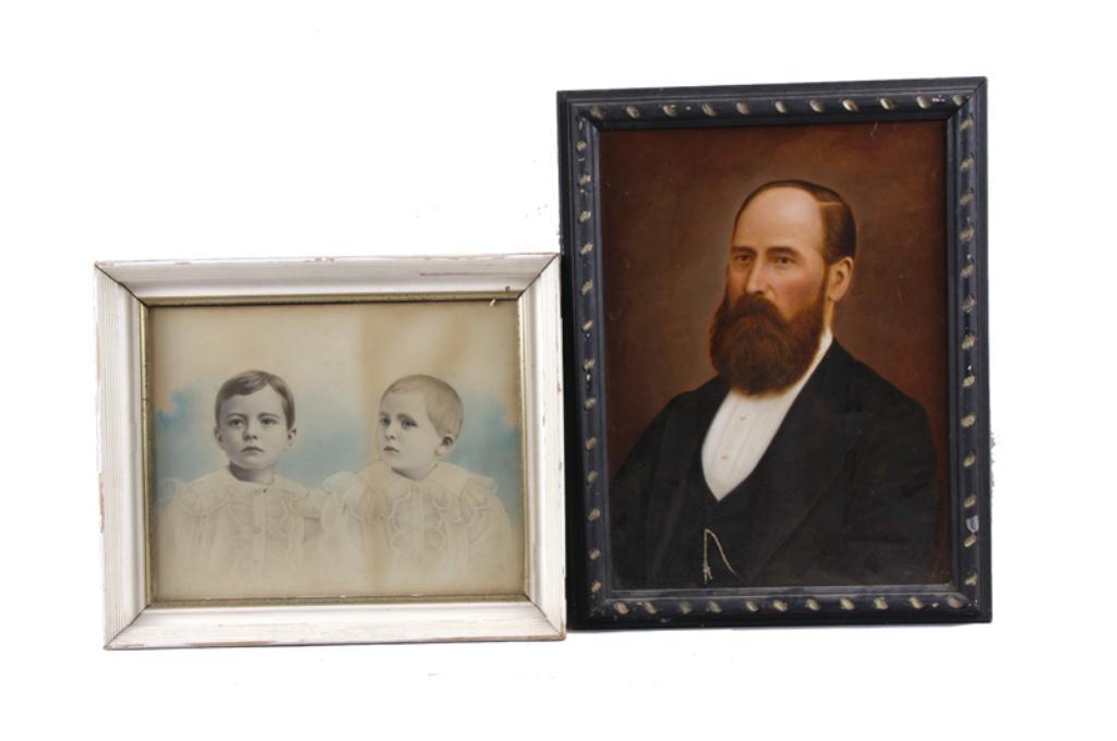 Collection of 2 Portraits 1- oil on board of Federal Era gentleman, measures 25"x18"; and 1- photograph copy of 2 children, measures 19"x16 1/2".1- oil on board of Federal Era gentleman, measures 25"x18"; and 1- photograph copy of 2 children, measures 19"x16 1/2".