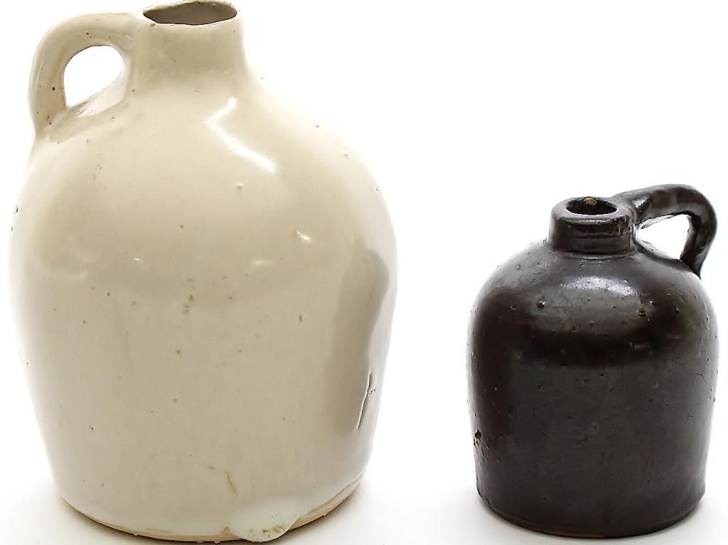 Collection of 2 antique miniature stoneware jugs tallest 4", both show good condition.
