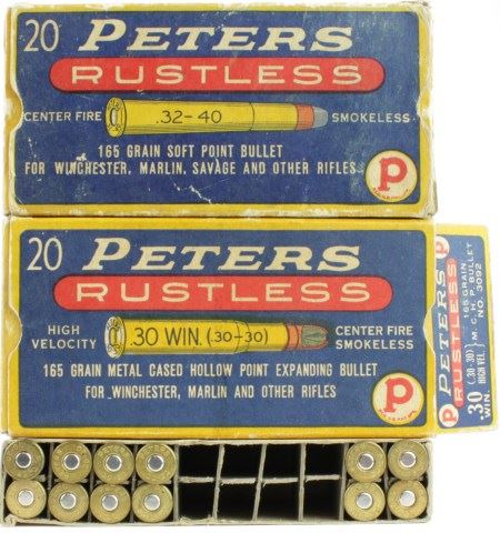 including Peters .30-30 with 12 rounds, and 1 empty Peters 32-40. Est. 25-75