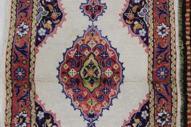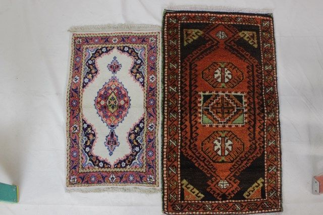 Turkish Yastik 24" X 41", 1950's and Persian Lilhan with Salmon, white, blues and tan, 19" X 32". Both excellent condition. Est. 250-400