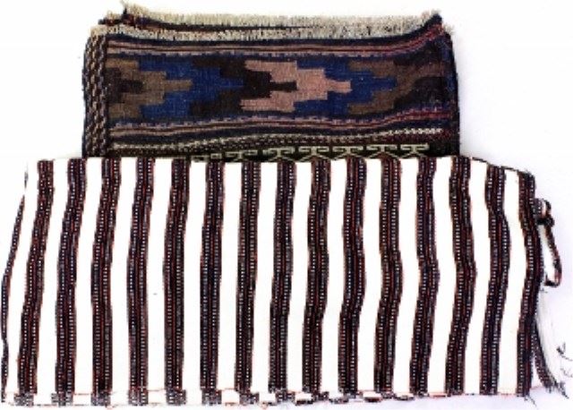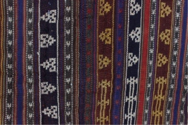 showing fine condition, 57" X 95" and hand woven Kilim with horizontal banding showing fine condition, 35" X 150". Est. 250-450