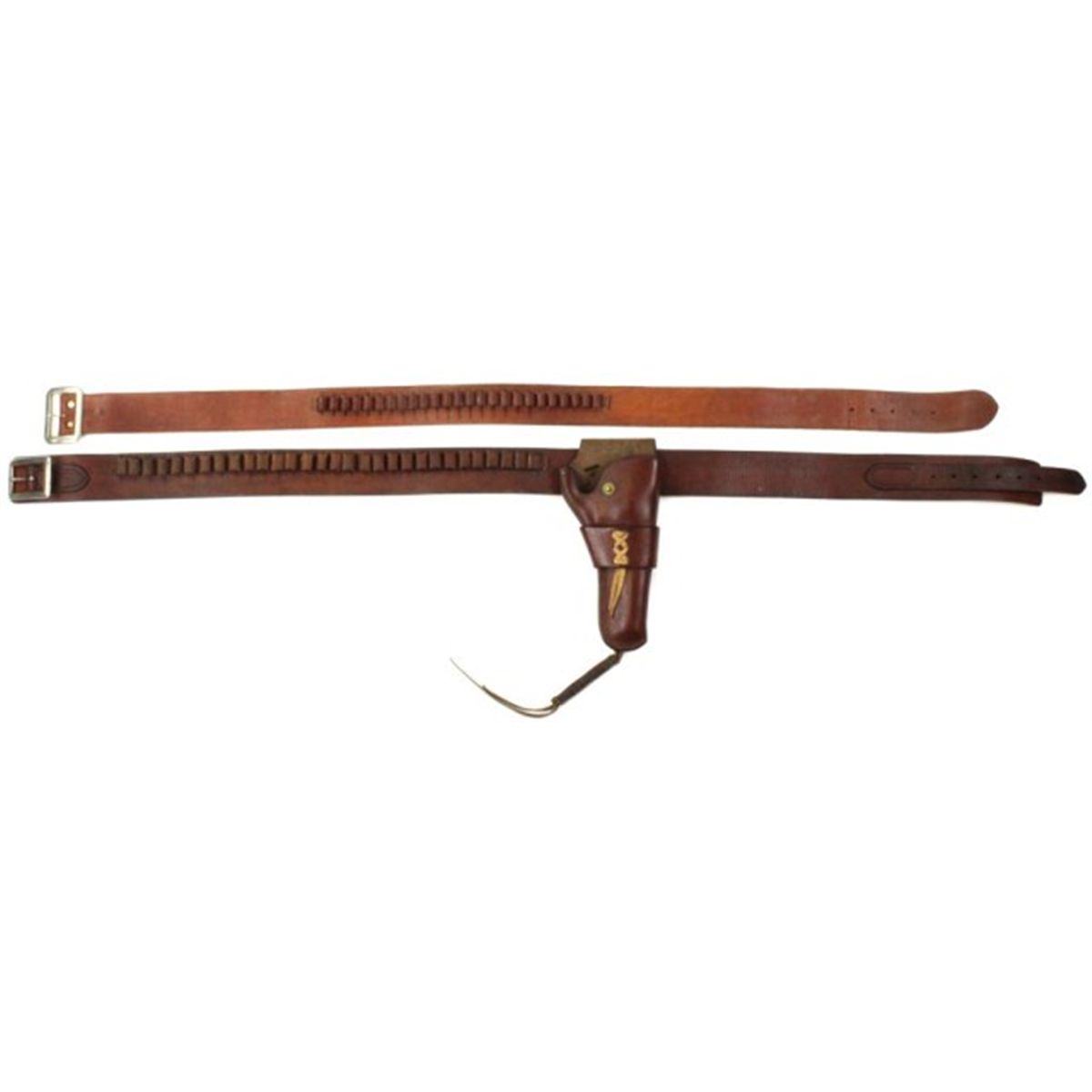 Collection of 2 includes Heiser holster rig for medium frame revolver missing trigger strap, .44 cal, waist 44" and Lawrence marked cartridge belt .32 cal., waist 34-38".