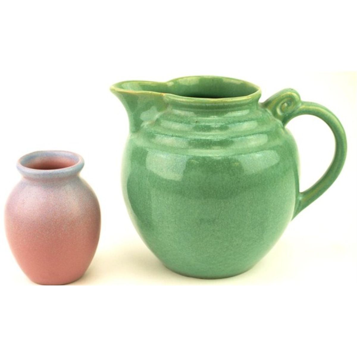 Collection of 2 includes North Dickota Pottery milk pitcher 6 1/2" tall and vase 4" tall. No chips, cracks or repairs.