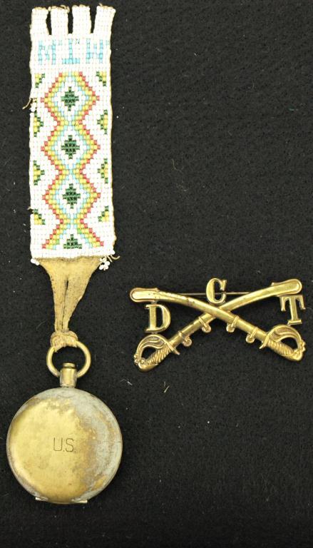marked US Hunter case style with original beaded fob and original crossed sabers DCT hat pin.