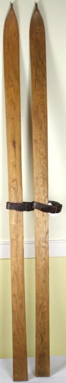Collection of 2 includes antique wooden skis, with good leather binding and a pencil signed lithograph by CA artist Bill Owen image size 21" X 15". Est. 50-100