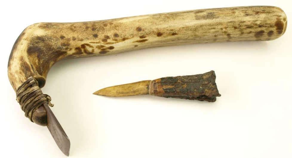 with steel blade 11 1/2" and bone handled knife with bone blade 5".