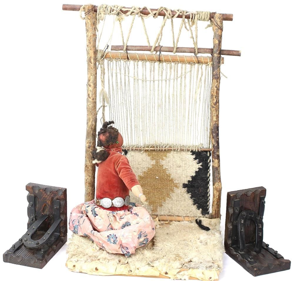 Collection of 2 includes early Navajo weaver display and a pair of bookends.