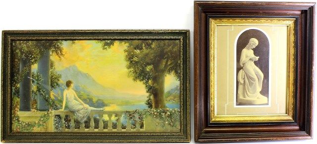 in original frame with good colors, image 9 1/2" X 17 1/2" and print of marble sculpture in Victorian walnut frame, image 8" X 9 1/2". Est. 75-175