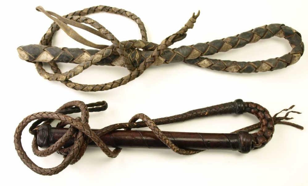 Collection of 2 leather bull whips