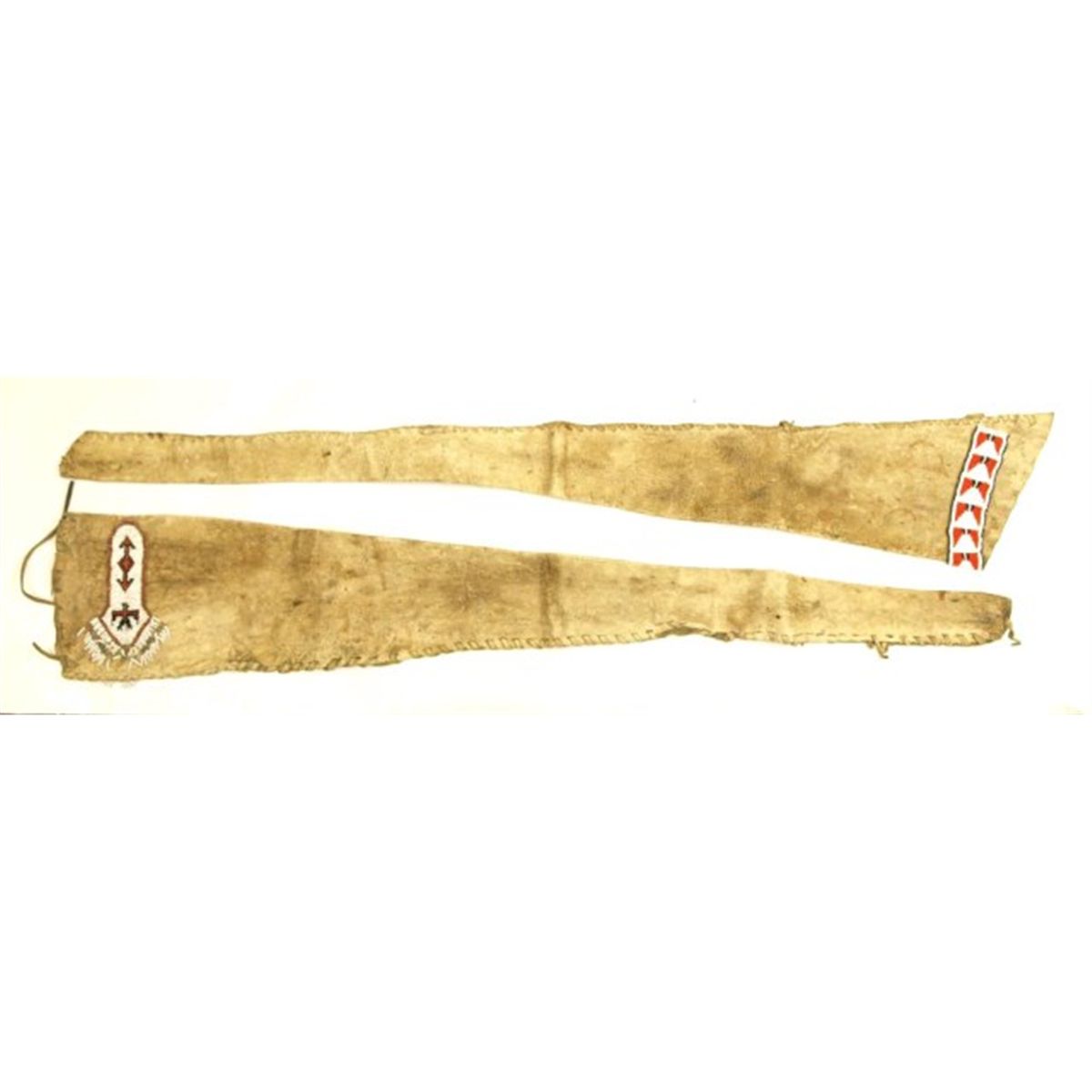 Collection of 2 leather rifle scabbards both buck stitched at seams with latter applied beadwork. One fits 20" carbine the other probably single shot boys rifle.