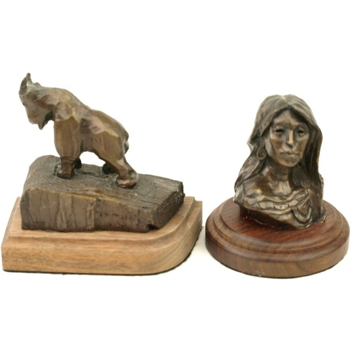 Collection of 2 original bronzes include Ace Powell marked Lake McDonald Glacier National Park #1/75, 4 1/2" tall and Original bronze signed Nancy McLaughlin #13/85 depicting an Indian Maiden, 4' tall.