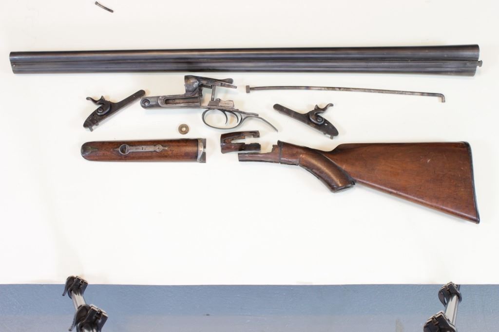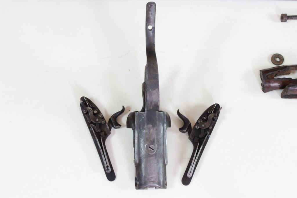 Collection of 2 parts guns 1) Parker Grade 2 12 ga. SN 41700 SXS hammer shotgun with 32" barrels, includes mutton leg case.