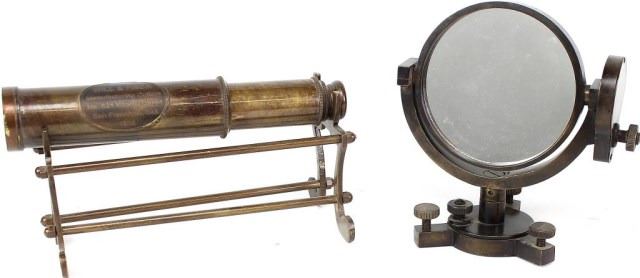 Will and Finck telescope on base and brass surveyors mirror. Est. 25-50