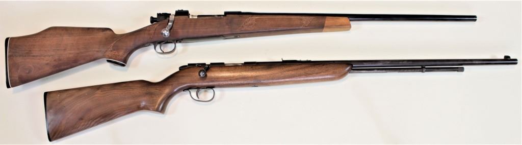 Collection of 2 rifles includes 1) US Eddystone 03-A3 .300 win SN 3993144 sporterized bolt action rifle with 22 1/2" barrel and unfinished custom walnut stocks, buttplate and pistol grips cap fitted. Top of receiver drilled and tapped for blocks. Action03-A3 .300 win SN 3993144 sporterized bolt action rifle with 22 1/2" barrel and unfinished custom walnut stocks, buttplate and pistol grips cap fitted. Top of receiver drilled and tapped for blocks. Action functions, bore good.2) Remington model 5/2 .22 SLLR NVSN bolt action rifle in fair condition, action stiff bot functioning, bore fair. From old St. Louis collection. FFL/Modern. Est. 150-200
