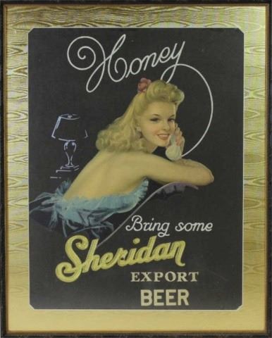 Collection of 2 scarce Sheridan Brewing Co. itemsincluding an original carboard advertiser for the Sheridan Export Beer, 19 1/2" X 25 1/2", and a 3/4 quart Export beer bottle with label. Est. 250-400