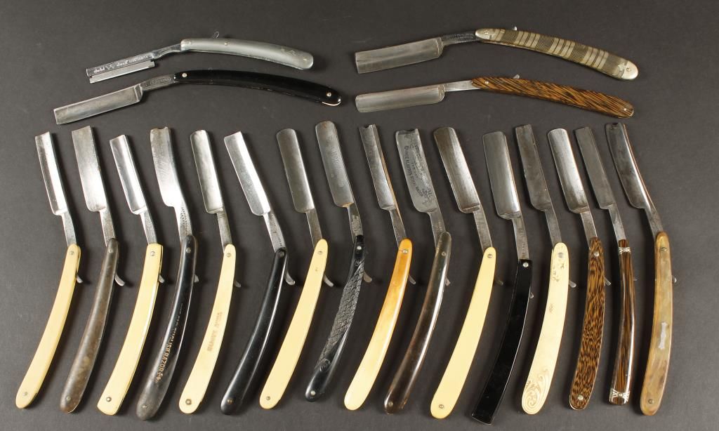(1) Simon Pure Cutlery Co, Germany. (1) Warranted Razor, Sheffield, with blade marked "Prince Alberts Royal Razor". (1) Bancroft Razor Corp. (1) Dubi Duck Hair Shaper. (1) Dixie MFG Co. (1) Electric. And many more.