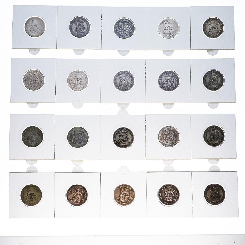 Collection of 20 British silver one shillings between years 1894-1935-83609