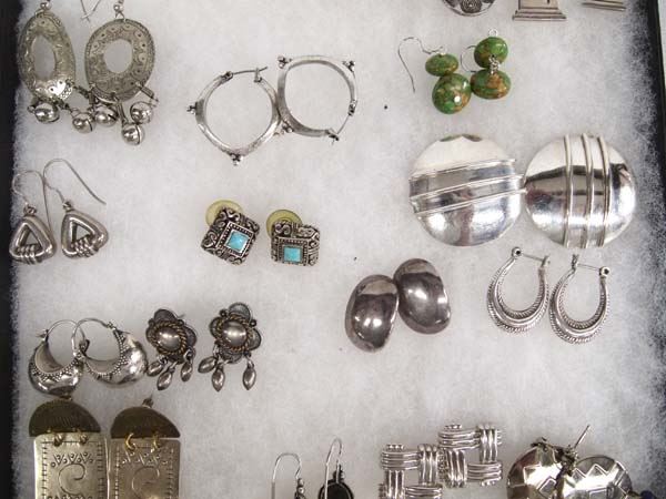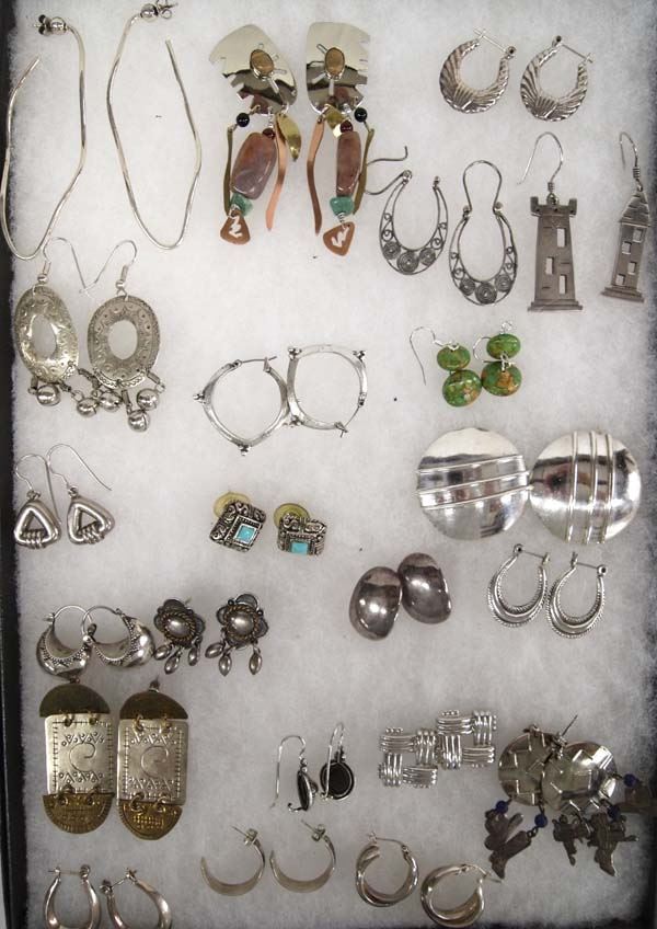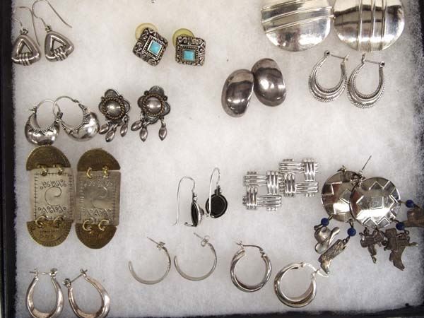 Collection of 20+ Sterling Silver Earrings, longest measures 3''L, 141g in total wt. Nice collection with lots of variety.