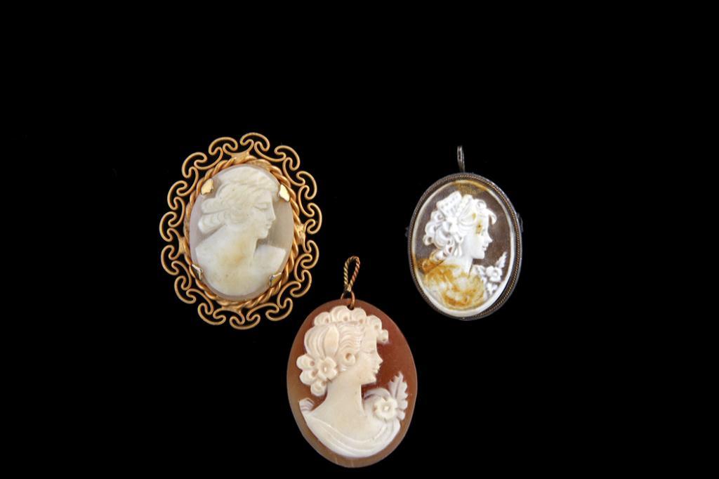 Collection of 3 Antique Cameo's One is signed on back.One is signed on back.