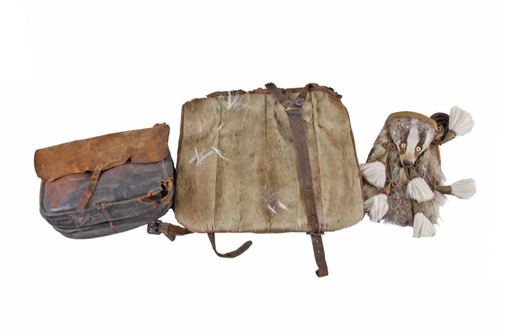 Collection of 3 Bags Includes an Officer's Undress Badger Sporran of Argyll 8 Sutherland Highlanders, a leather possibles bag, and a leather and fur hunting bag.Includes an Officer's Undress Badger Sporran of Argyll 8 Sutherland Highlanders, a leather possibles bag, and a leather and fur hunting bag.