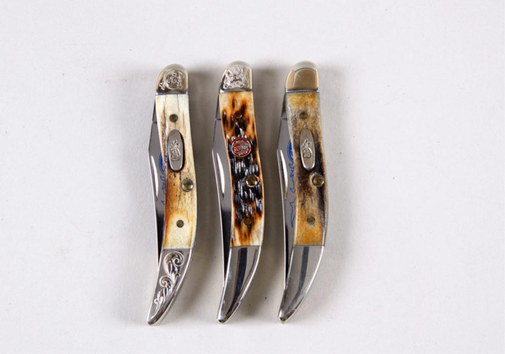 Collection of 3 Case 1 Blade Pocket Knives All with stag handles, two are blue scroll knives which m